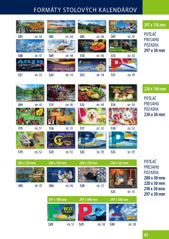 FORMÁTY STOLOVÝCH KALENDÁROV